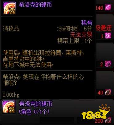 角色能兑换3个智慧的引导史诗袖珍罐,需40个绚烂水晶花瓣,随机出一件百级SS,无法得到工作服装备。希洛克困难组队申请边框,要200个绚烂水晶花瓣,数量还挺多的。此外,还有一个希洛克的硬币,能随机出现拉维茜、莱斯特、吉里特效中的1种,类似变身的道具,没有实质性作用。