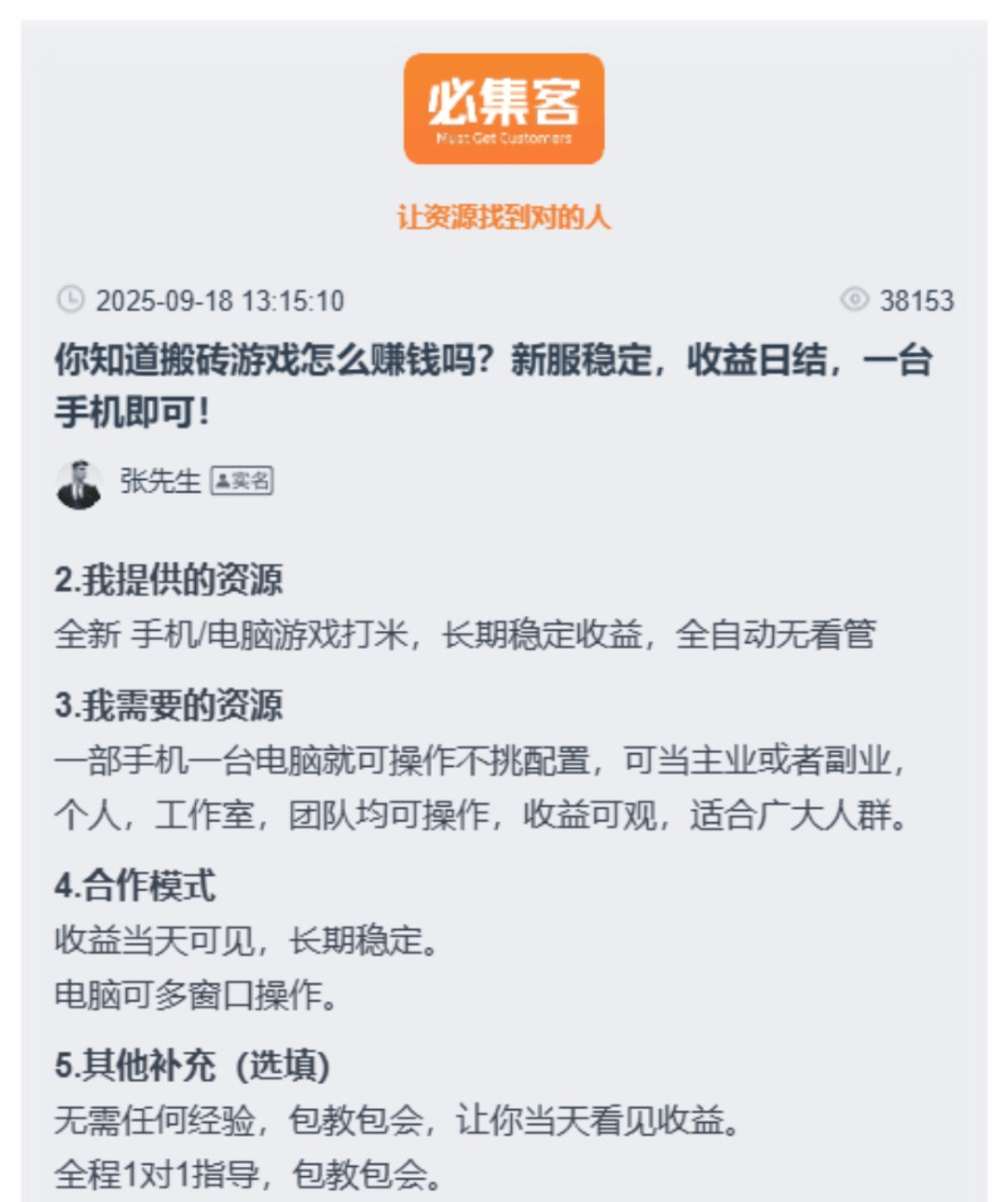 不想刷道具的话,还能在必集客对接代练商单,每局代练能赚约5元;也可以出租高等级账号,或是用云手机24小时挂机刷高收益区域,再通过平台快速变现,轻松实现手游搬砖赚rmb。