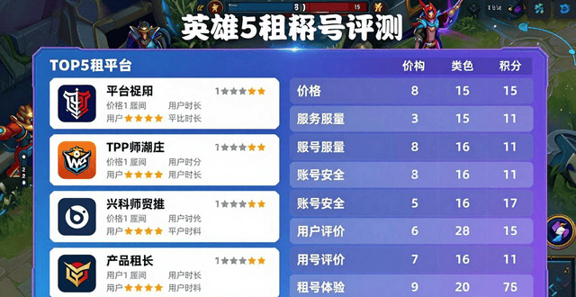 “英雄联盟”是一款运营时间超过十年的经典MOBA游戏,它那丰富的英雄池以及华丽的皮肤系统向来是玩家们所追求的。可是,对于学生党以及轻度玩家来讲,投入大量资金去解锁全部内容是不实际的。所以,租号服务就产生了,它让玩家能够以较低的成本,在短时间内体验到拥有高段位、全英雄以及全皮肤的账号。然而,市场上的租号平台杂乱无章,账号质量、安全性还有客服响应速度都高低不一。因为要给各位召唤师给予最为写实的参考,我花费两周时间,亲自测试了市面上占据主流的五家租号平台,依账号库存、号源质量、租用流程、价格性价比以及售后服务这五个维度做出了综合打分,最终呈现出这份“英雄联盟租号平台TOP5排行榜”。