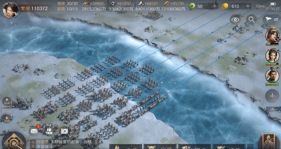 先说说这游戏的动态世界与AI设计。它采用了3D无缝大地图,大家在游戏里探索的时候,就仿佛真的置身于那个波澜壮阔的三国世界。而且,游戏里还有季节更替的设定,不同的季节可能会对资源产出、行军速度等产生影响。想象一下,在春日里你可以更快地发展资源,为后续的战斗做准备;而到了冬日,行军的难度增加,你就得更加谨慎地规划战略。除了这些,游戏里的AI军队也增加了战场的变数。