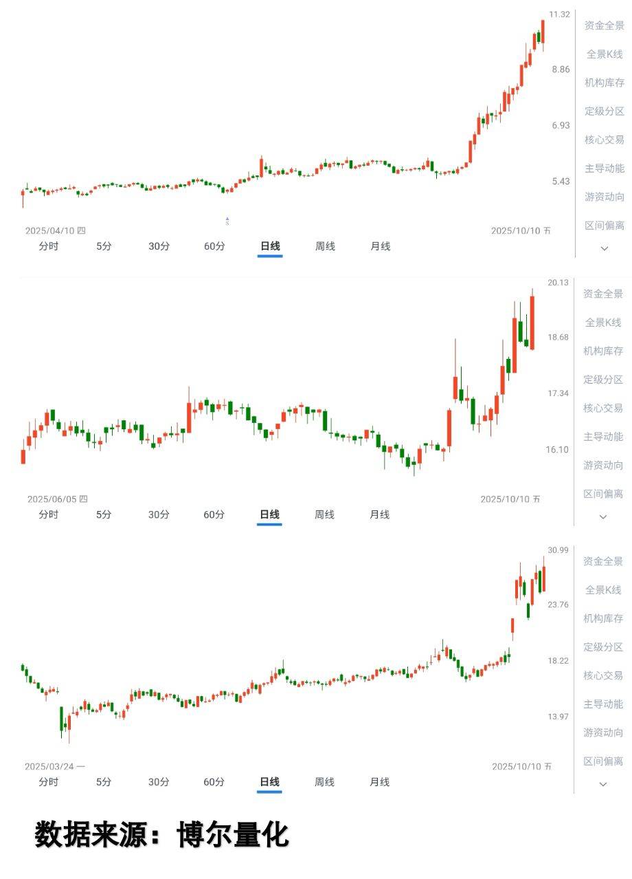 在量化交易系统陪伴我的十年里,我发现了一个重要规律:无论市场如何变化,大资金的运作手法总有迹可循。就拿2025年10月涨幅居前的几只股票来说: