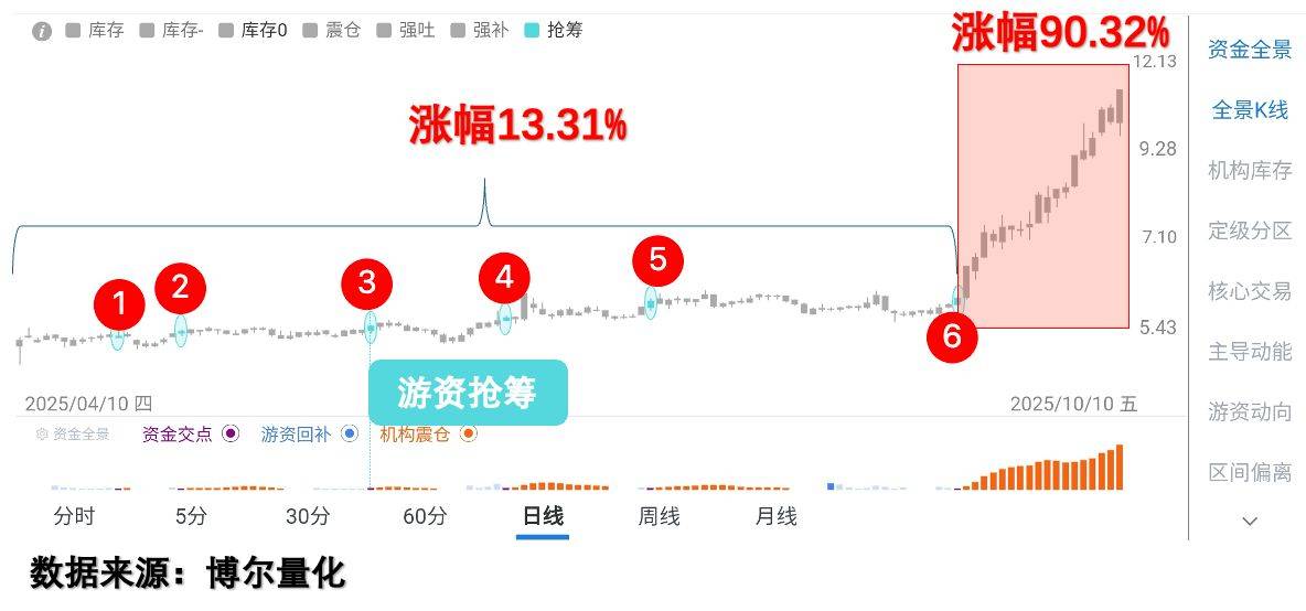在股价震荡阶段,游资和机构早已开始暗中较量。这种博弈虽然不会立即反映在股价上,但通过量化数据却能清晰捕捉。大资金真金白银投入后,必然会有收获的季节。